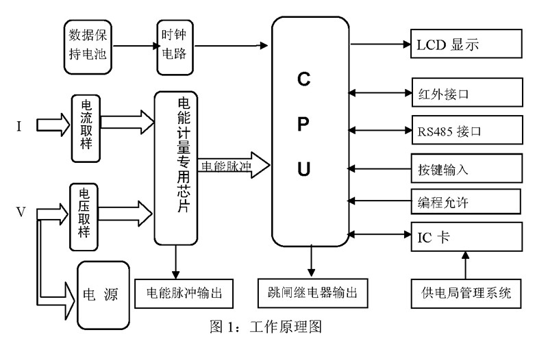 由計(jì)算機(jī)管理信息系統(tǒng),通過(guò)IC卡讀寫(xiě)器,寫(xiě)入一定電量和監(jiān)控要求的IC卡輸入表內(nèi)微處理器系統(tǒng),經(jīng)CPU運(yùn)算后,提供顯示、報(bào)警、切斷狀態(tài)信號(hào)。