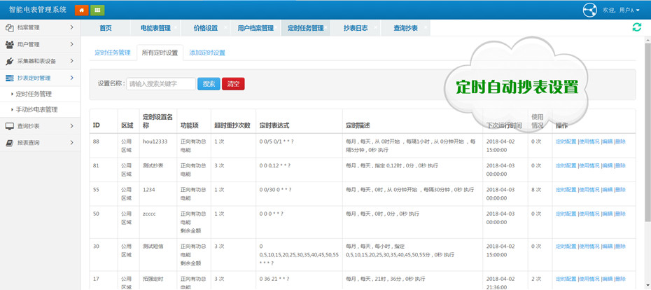 (6)支持定時(shí)抄表,可精確到任何一只表。定時(shí)功能支持cron表達(dá)式指定時(shí)間抄表、間隔時(shí)間抄表、工作日抄表、結(jié)算日抄表等,滿足任何定時(shí)抄表需求。