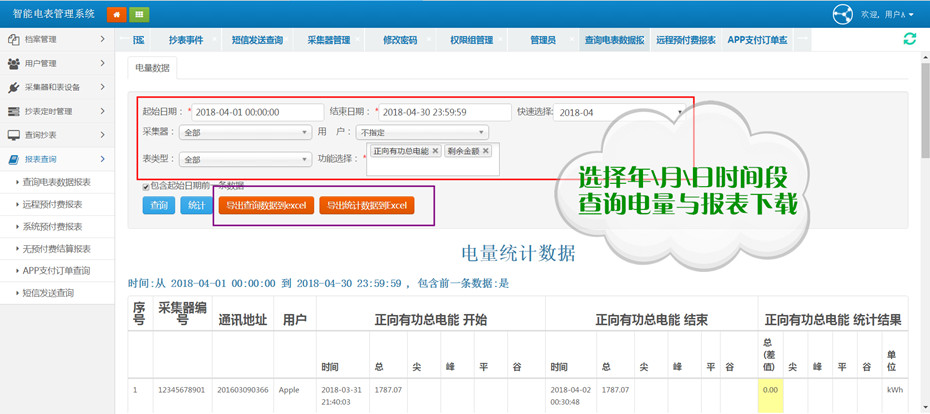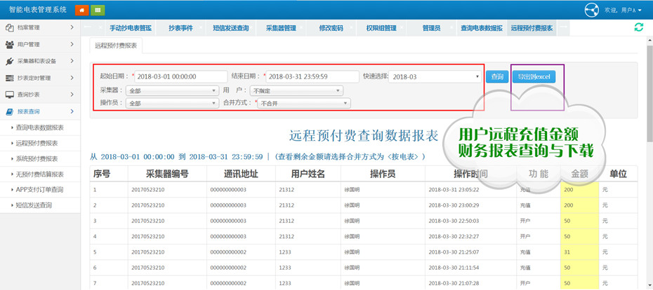 (7)所有抄表數(shù)據(jù)的統(tǒng)計(jì)、查詢、備份、報(bào)表生成、導(dǎo)出到Excel。